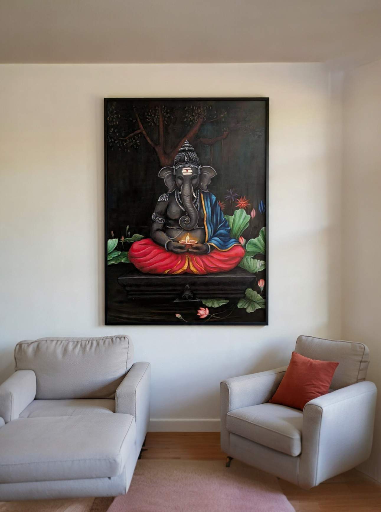 Ganesha With Glowing Lamp In Subtle Colours 4 Feet X 3 Feet Acrylic Painting