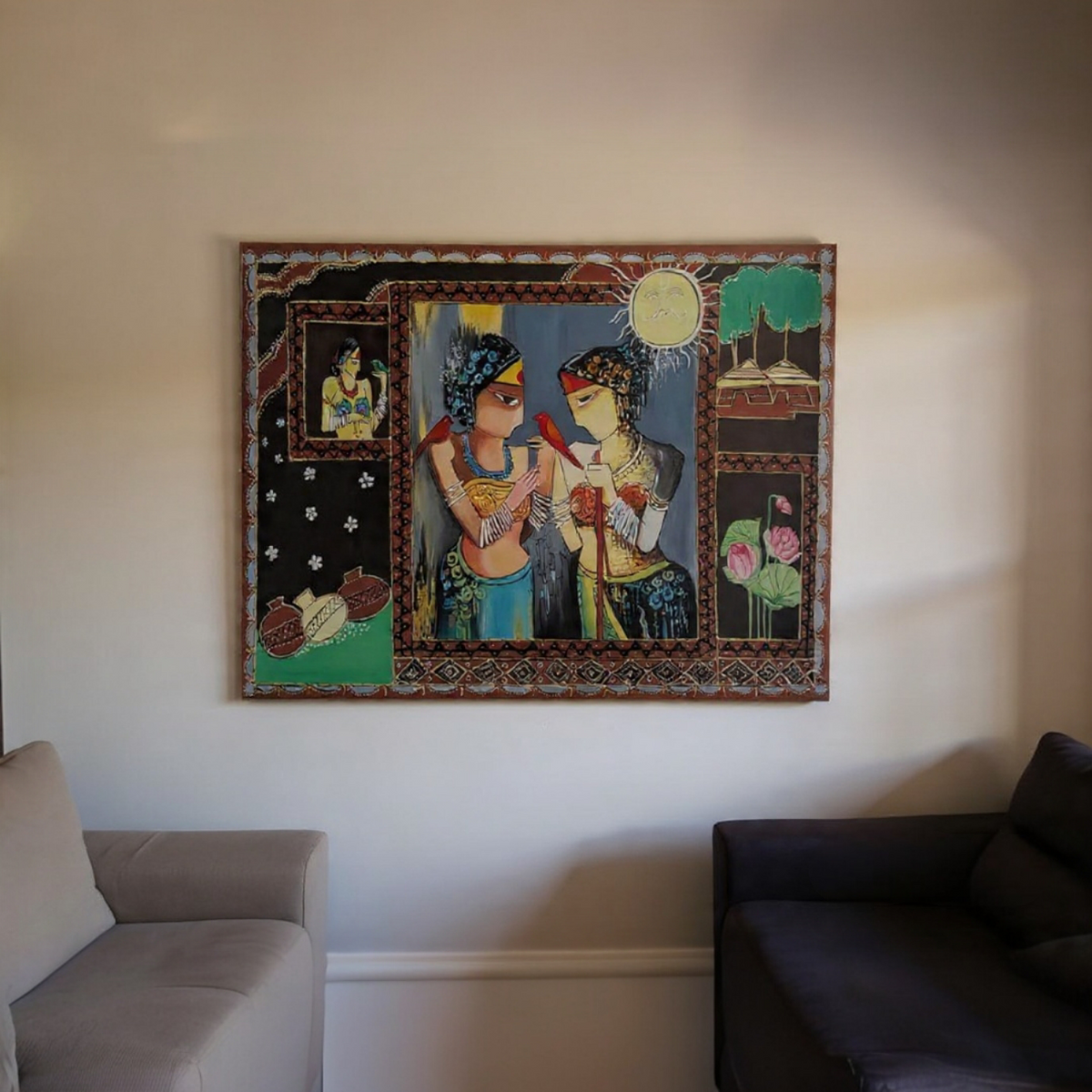 Mahbubani Folk Art With Embossed Design 4 Feet X 3 Feet - Without Frame