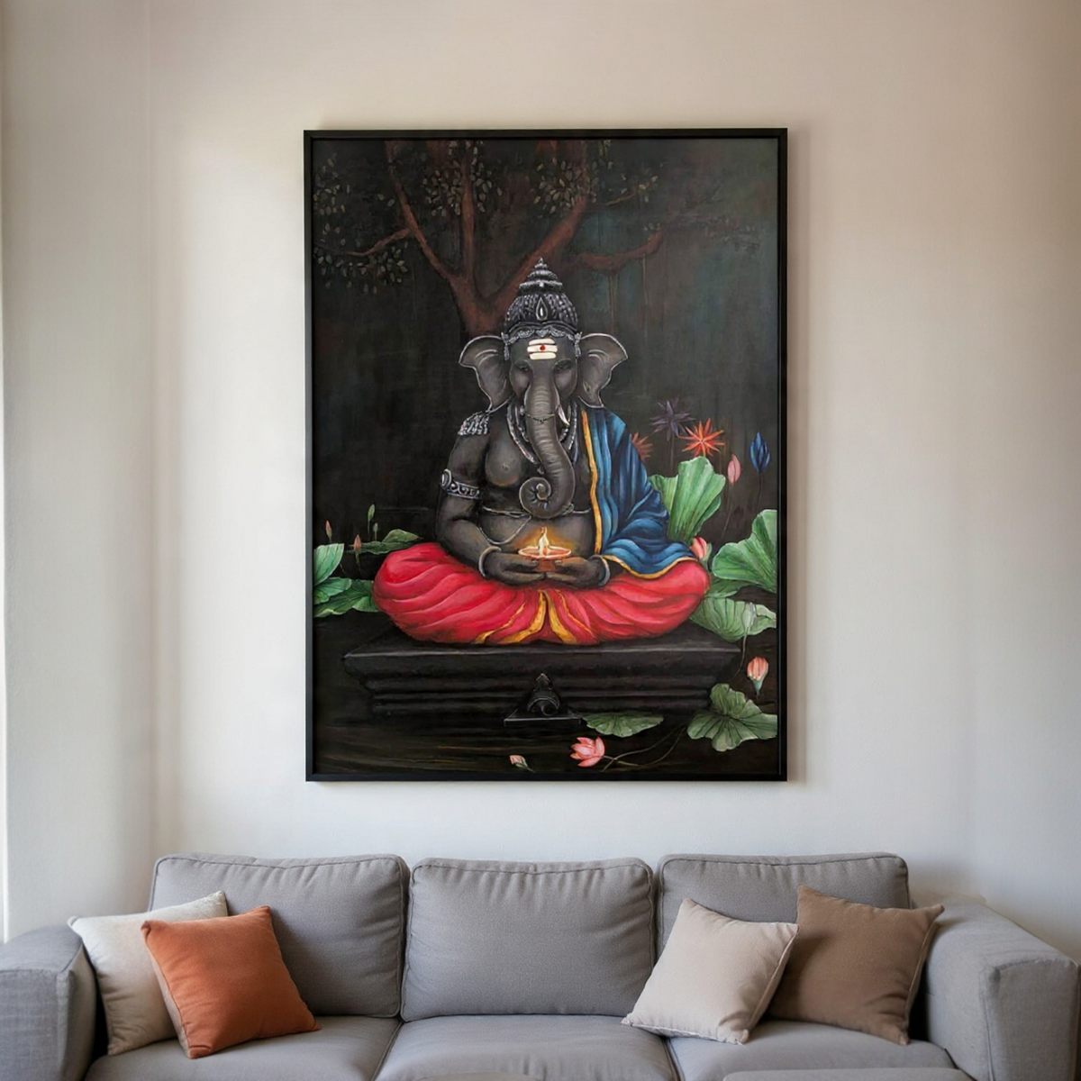 Ganesha With Glowing Lamp In Subtle Colours 4 Feet X 3 Feet Acrylic Painting